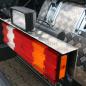 Der Teleskop-Kipp-Rahmen dient zum Kippen, Auf- oder Absetzen des Behälters und ist gelenkig ausgeführt. Das erste Gelenk ist zweiarmig ausgebildet und an beiden Enden mit einer Drehwelle verbunden. An der Oberseite sind die Behälter-Arretierungen angeschweißt. Das zweite Gelenk führt den hydraulisch ausschiebbaren Ausleger, an dessen Spitze der zentrale Fanghaken mit Sicherung befestigt ist.