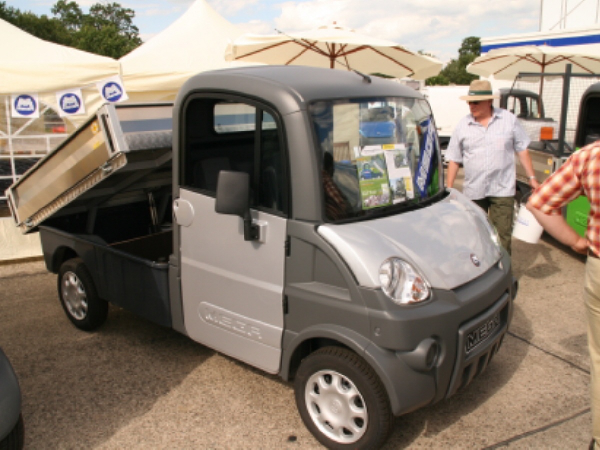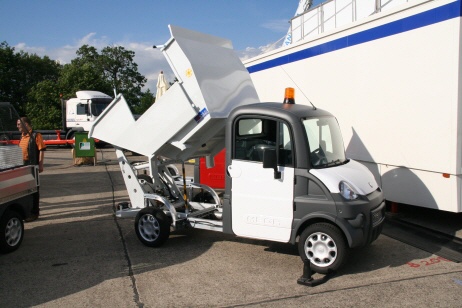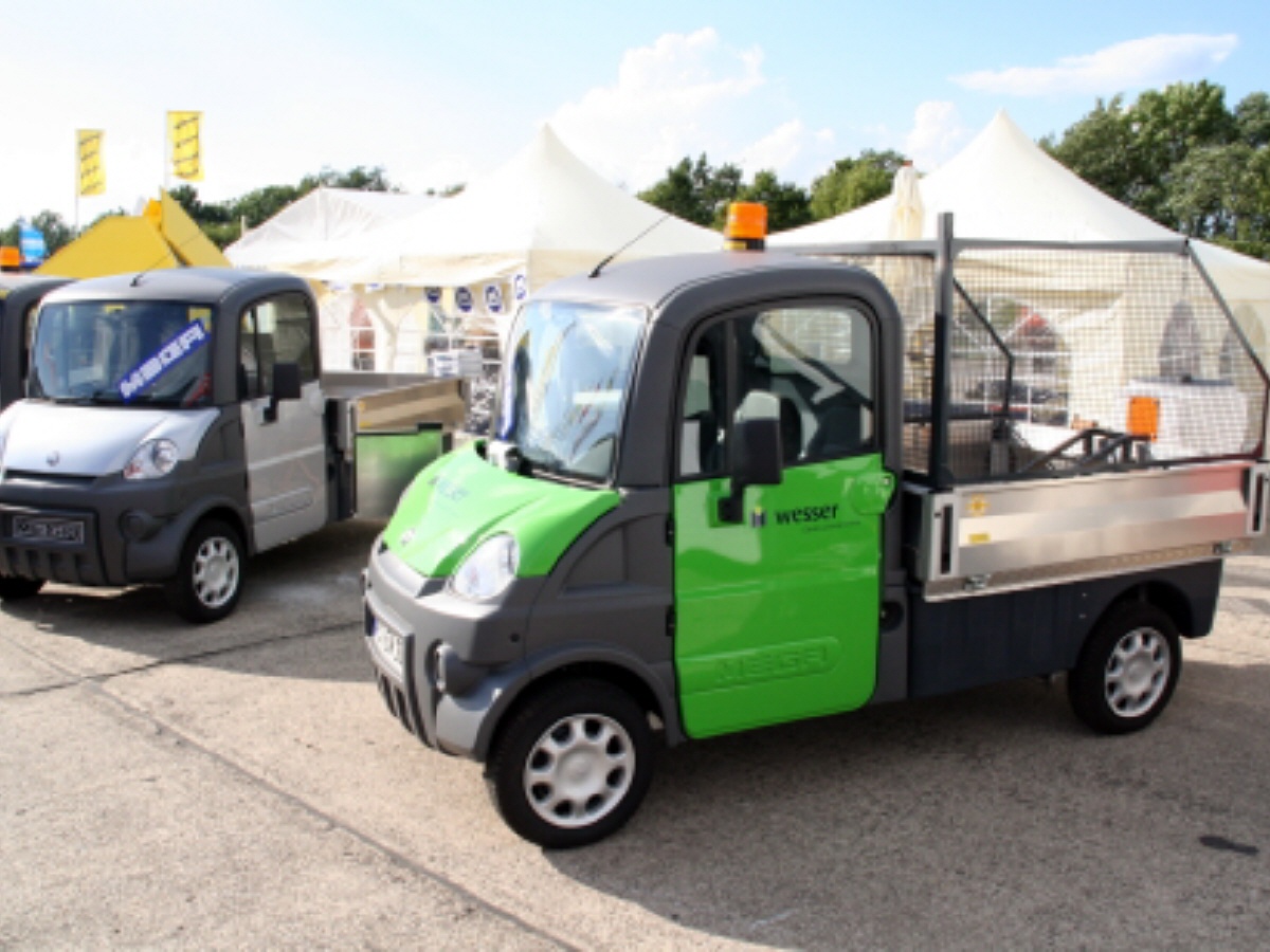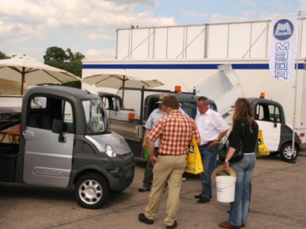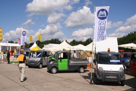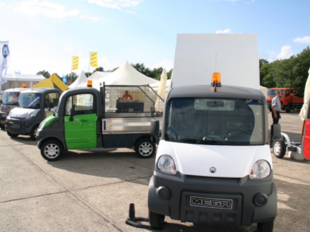 Es werden verschiedene Fahrzeuge des Herstellers Aixam-Mega gezeigt. Unter anderem die neue Version 600 und eine Neuvorstellung eines Kippers.