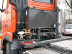 Es wurde ein Volvo 26 t Fahrzeug verwendet.Der Aufbau ist als Wechselsystem gebaut.So kann das Fahrzeug als Absetzkipper oder Sattelzugmaschine eingesetzt werden.