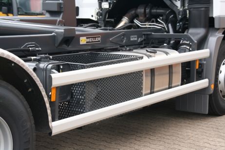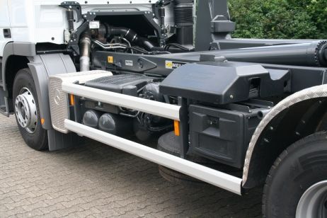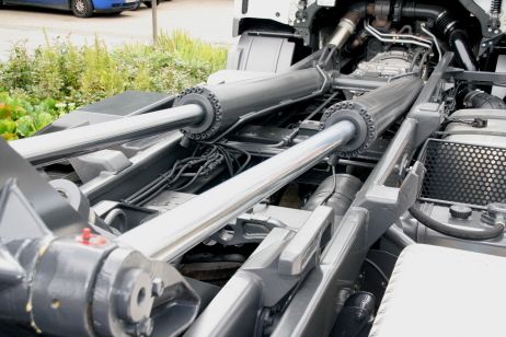 Das vor 25 Jahren von MEILLER als erstem Aufbauhersteller auf den Markt gebrachte vollhydraulische Abroll-System hat sich durch die geradlinige Längsverschiebung der Behälter als das optimale und am einfachsten bedienbare System am Markt durchgesetzt.