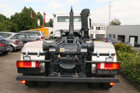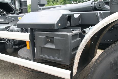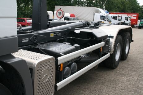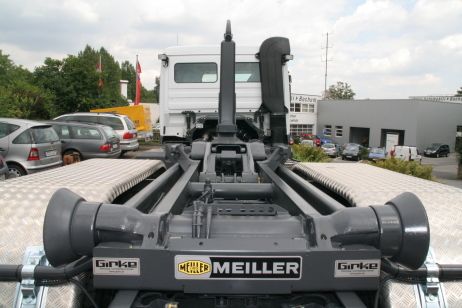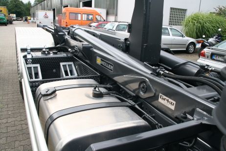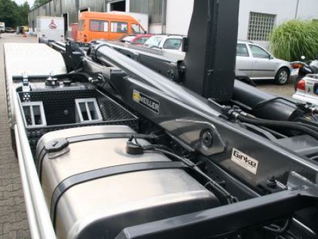 Abrollkipper für Fahrgestelle von 7,49 t bis 32 t. Es werden Geräte von dem Münchener Hersteller Meiller-Kipper verbaut.