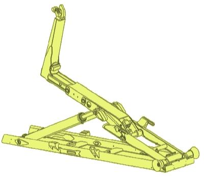 Der Teleskop-Kipp-Rahmen dient zum Kippen, Auf- oder Absetzen des Behälters und ist gelenkig ausgeführt. Das erste Gelenk ist zweiarmig ausgebildet und an beiden Enden mit einer Drehwelle verbunden. An der Oberseite sind die Behälter-Arretierungen angeschweißt. Das zweite Gelenk führt den hydraulisch ausschiebbaren Ausleger, an dessen Spitze der zentrale Fanghaken mit Sicherung befestigt ist.