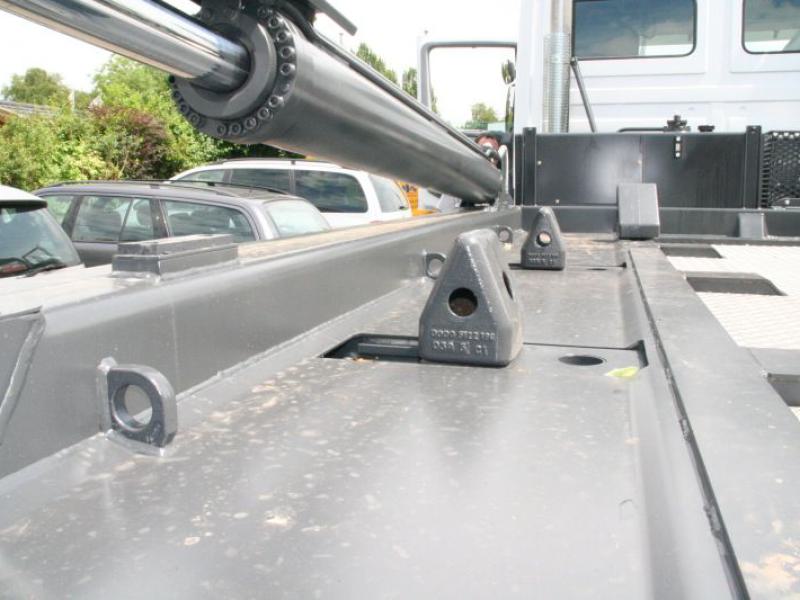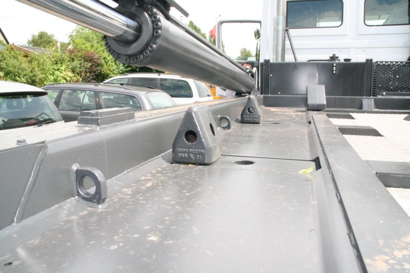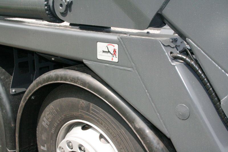 Ein Multifunktionskipphaken mit Aufklappsicherung und integrierter Sicherungsklinke ermöglicht das Entleeren von Behältern nach DIN 30 720, DIN 30 730 und Sonderbehältern.