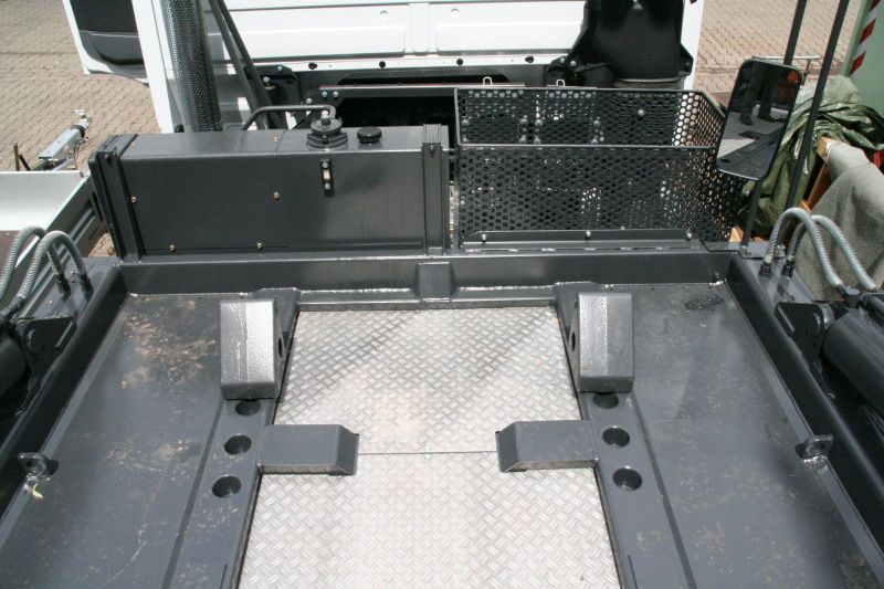 Die Ladebrücke aus hochfestem Baustahl in Rahmenbauweise mit Längs- und Querträgern kann ohne Hilfs- oder Montagerahmen auf jedes geeignete Fahrgestell adaptiert werden.