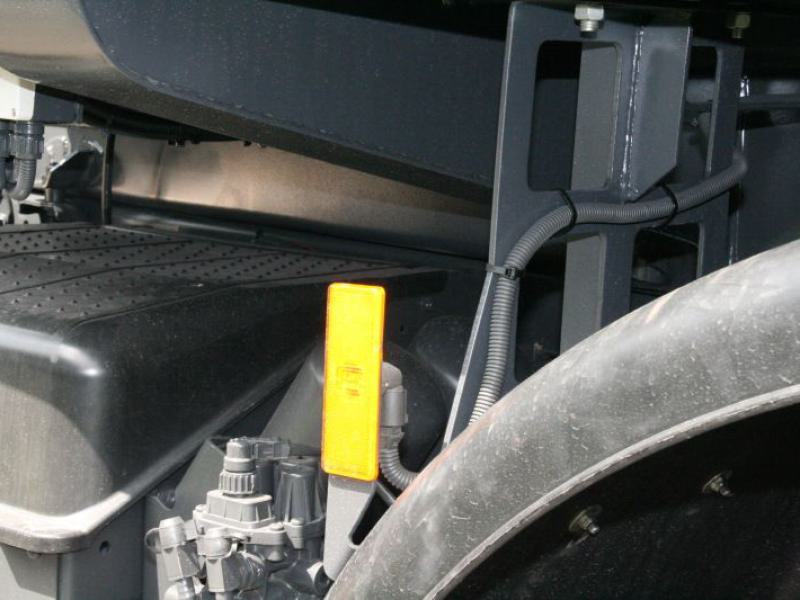 Der Meiller-Absetzkipper hat eine Verstärkung zwischen Stützfußträger und Längsrahmen.