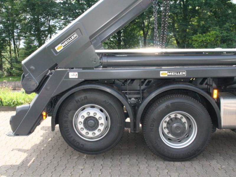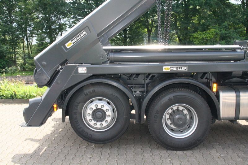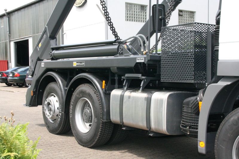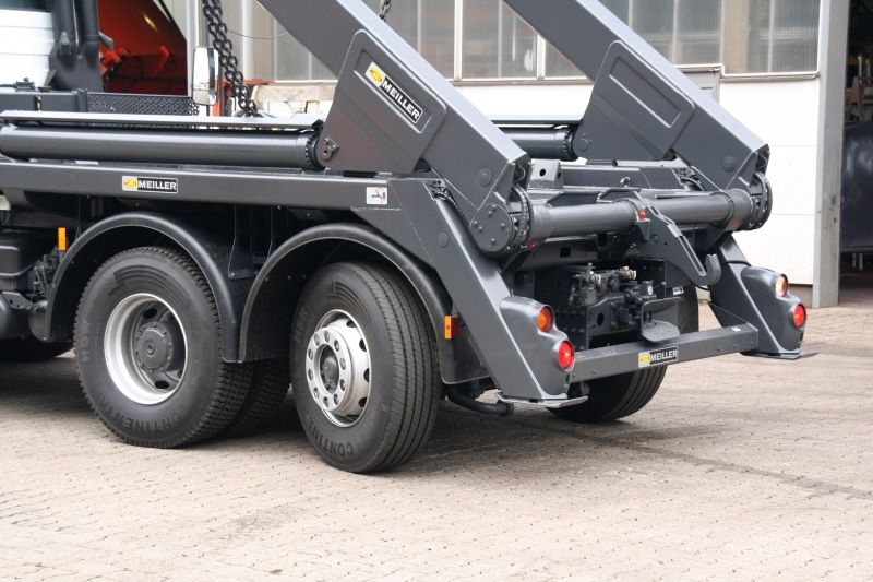 Neben einer breiten Produktpalette mit Aufbauten auf zwei-, drei- und vierachsige Fahrgestelle kann MEILLER zahlreiche praxiserprobte Detaillösungen an seinen Aufbauten anbieten. Das Angebot komplettieren speziell für den Transport von Absetzbehältern konzipierte Anhänger in Drehschemel- wie in Zentralachsausführung.
