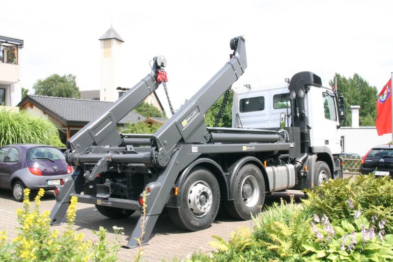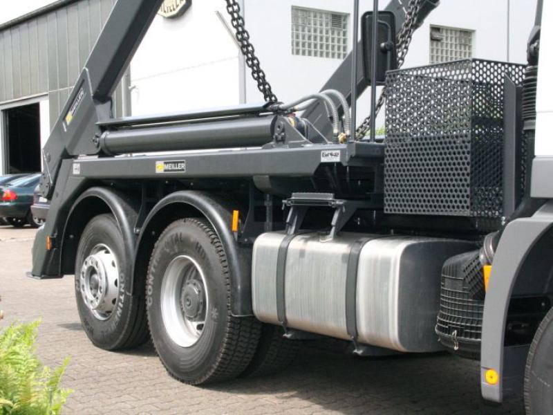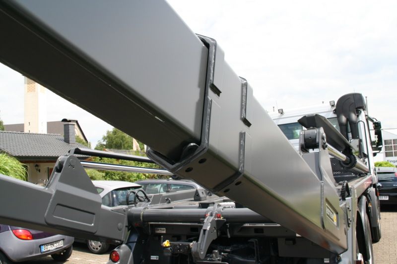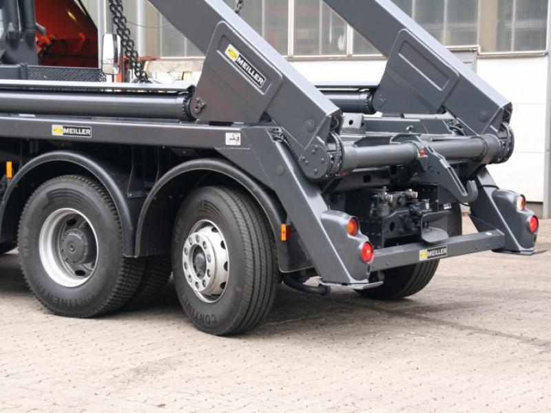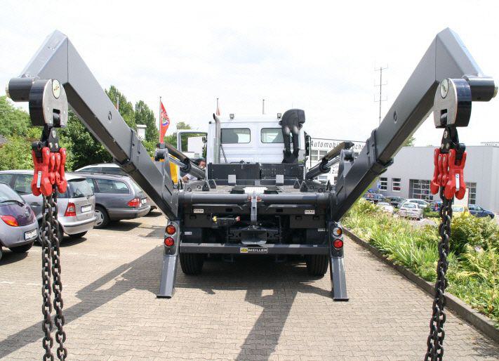 Das Absetzkipper-Programm von MEILLER berücksichtigt Fahrzeuge von 6 bis 26 Tonnen Gesamtgewicht. Auslegerarme werden wahlweise in starrer, knickbarer oder teleskopierbarer Form angeboten.