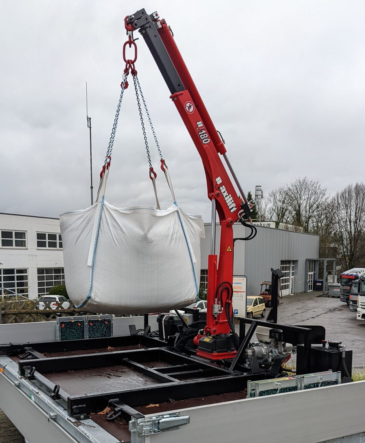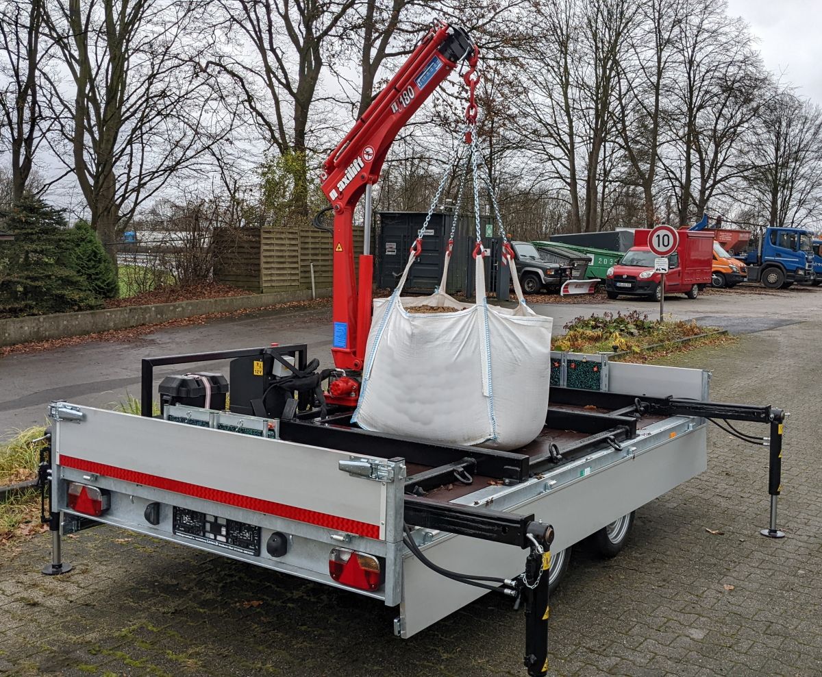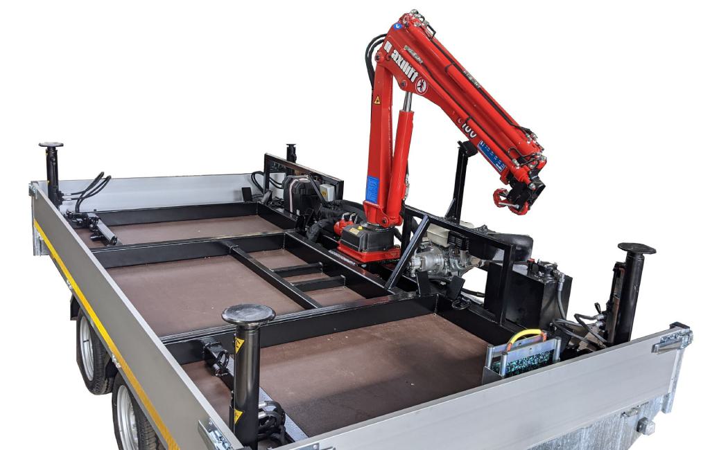 Dieser Anhänger könnte auch mit dem stärkeren Ladekran Maxilift m230 betrieben werden.