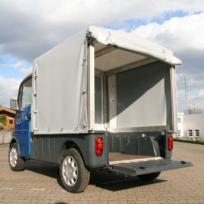Ein Leichtfahrzeug wurde für den Transport von Briefen und Paketen umgebaut. Ein Aufbau aus Alumium kam zum Einsatz. Auf dem Dach können auch lange Güter wie z.B. Holzstangen transportiert werden.
