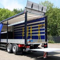 Hinterkipper mit Planenverdeck. Die seitlichen Planen können hochgeklappt werden. Unterbau verzinkt. Alu-Boden. Bauhöhe 160 mm !