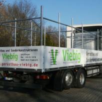 Pritschenaufbau für einen 26 t Lkw mit Gestell für Gerüste