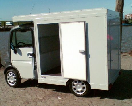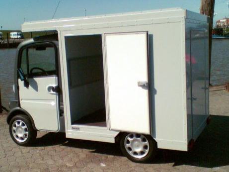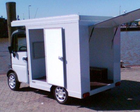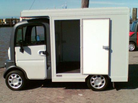 Ein Leichtfahrzeug wurde für den Transport von Briefen und Paketen umgebaut. Ein Aufbau aus Alumium kam zum Einsatz. Auf dem Dach können auch lange Güter wie z.B. Holzstangen transportiert werden.