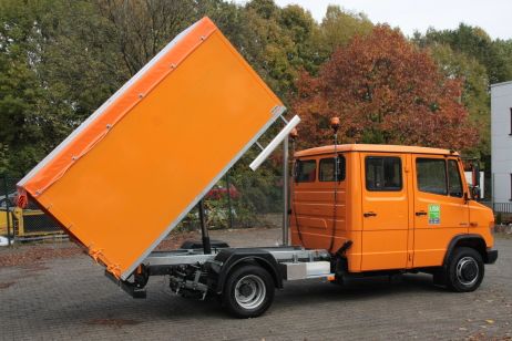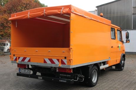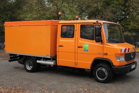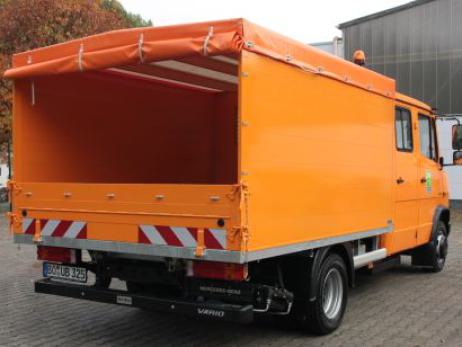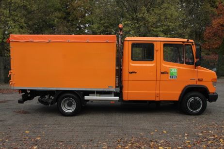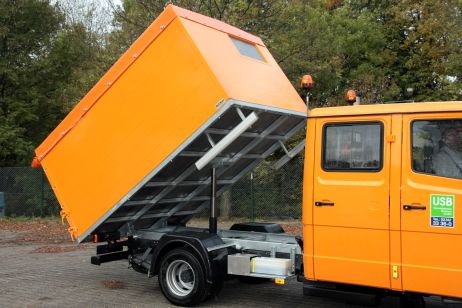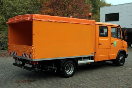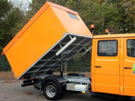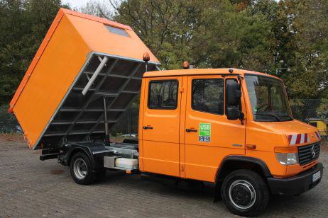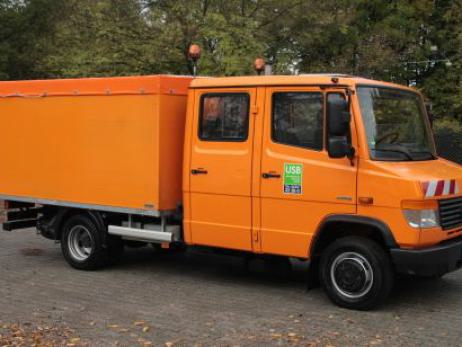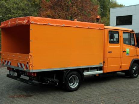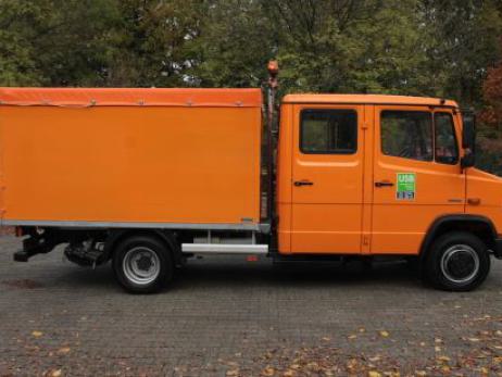 Ein Fahrzeug mit Doppelkabine kommt zum Einsatz. In diesem Falle ein Mercedes Vario.