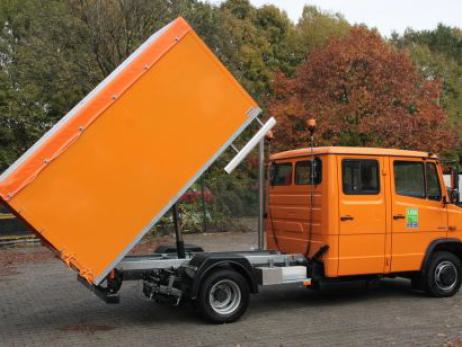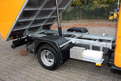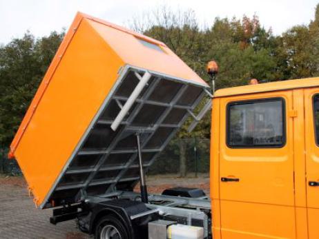 Hinter der Kabine wird ein ca. 3,0 m langer Kipper aufgesetzt.