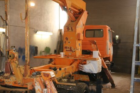 Das Lackieren der Fahrzeuge und Bauteile wird bei uns im Hause durchgeführt. Wir besitzen eine 100 m 2; große Lackierhalle, mit Absaugung und Heizung.
