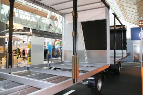 Ein Ausstellungsstück in Form eines Lkw-Zuges wurde gefertigt. Unter anderem sollten verschiedene Anbauteile für Lkw bzw. Anhänger montiert werden.