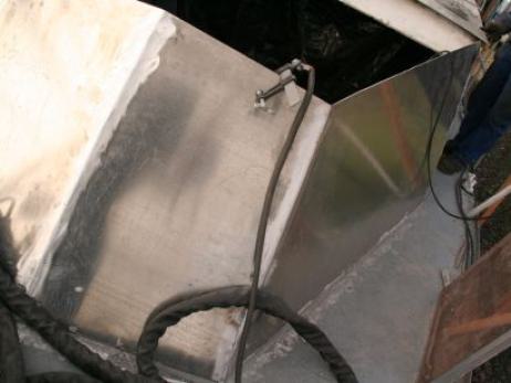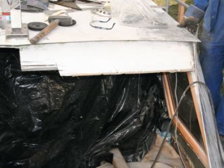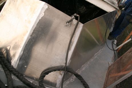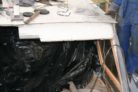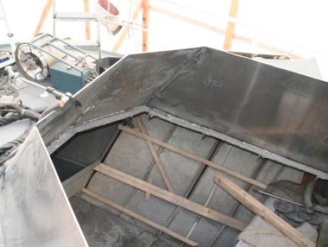 Die Aluminium-Bleche wurden entsprechend den Vorgaben angepaßt und angeschweißt. Nach Fertigstellung der Verlängerung wurde der ursprüngliche Boden und die Scheiben abgetrennt.