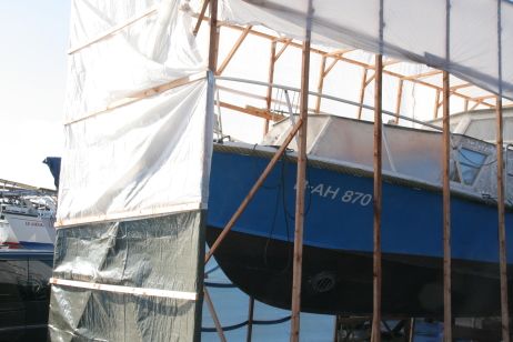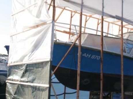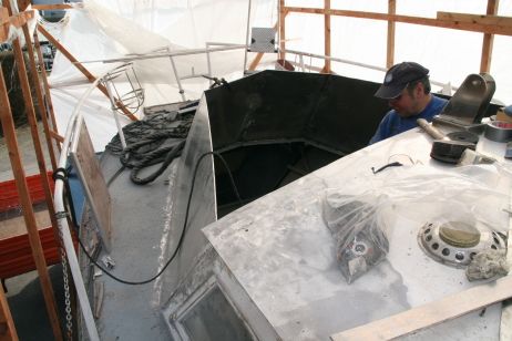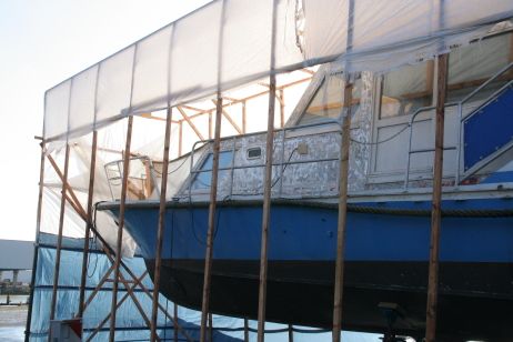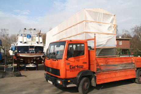 Der geschaffene Raum ist als neue Kabine eingesetzt worden. Die Arbeiten konnten nicht in der Werkhalle durchgeführt werden, da das Schiff zu groß war.
