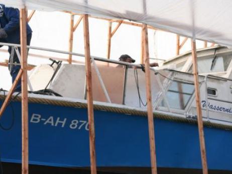 Ein vorhandenes ehemaliges Polizeischiff wurde im vorderen Bereich um ca. 2 m verlängert.