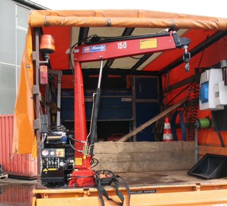 Seit kurzem wird der Ladekran über eine Funkfernsteuerung bediehnt.