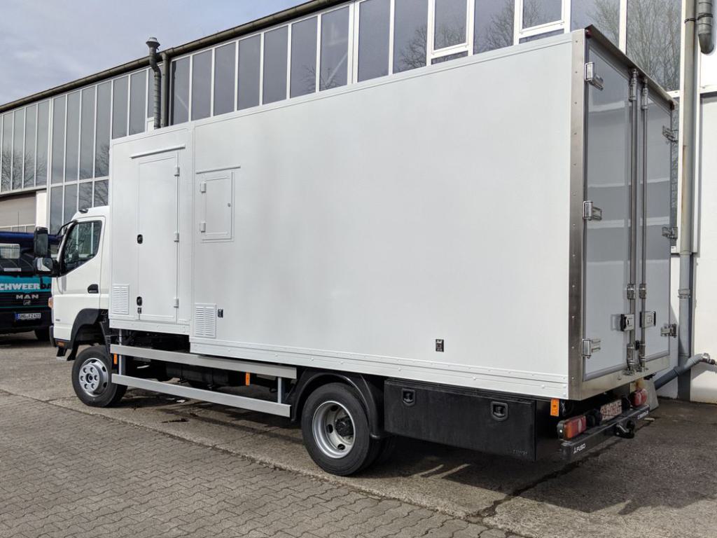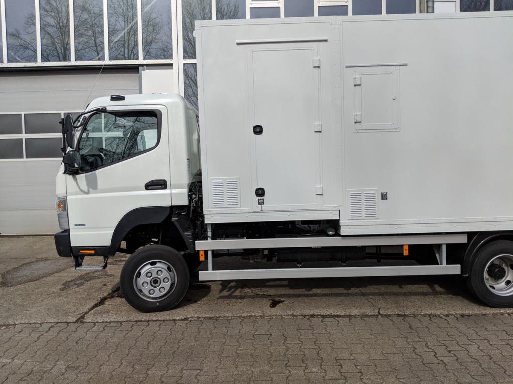 Spezial-Koffer für eine Wasserstoff-Tankstelle. Der Koffer wurde in zwei verschiedenen Bereichen gefertigt. Der vordere Koffer wurde aufgrund der Anforderungen mit Aluminium-Blechen ausgestattet. Der hinterer Koffer wurde in GFK-Sandwichbauweise gefertigt. Das Fahrzeug wurde auf der Hannovermesse ausgestellt.