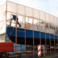 Ein vorhandenes ehemaliges Polizeischiff wurde im vorderen Bereich um ca. 2 m verlängert. Der geschaffene Raum ist als neue Kabine eingesetzt worden. Die Arbeiten konnten nicht in der Werkhalle durchgeführt werden, da das Schiff zu groß war.