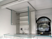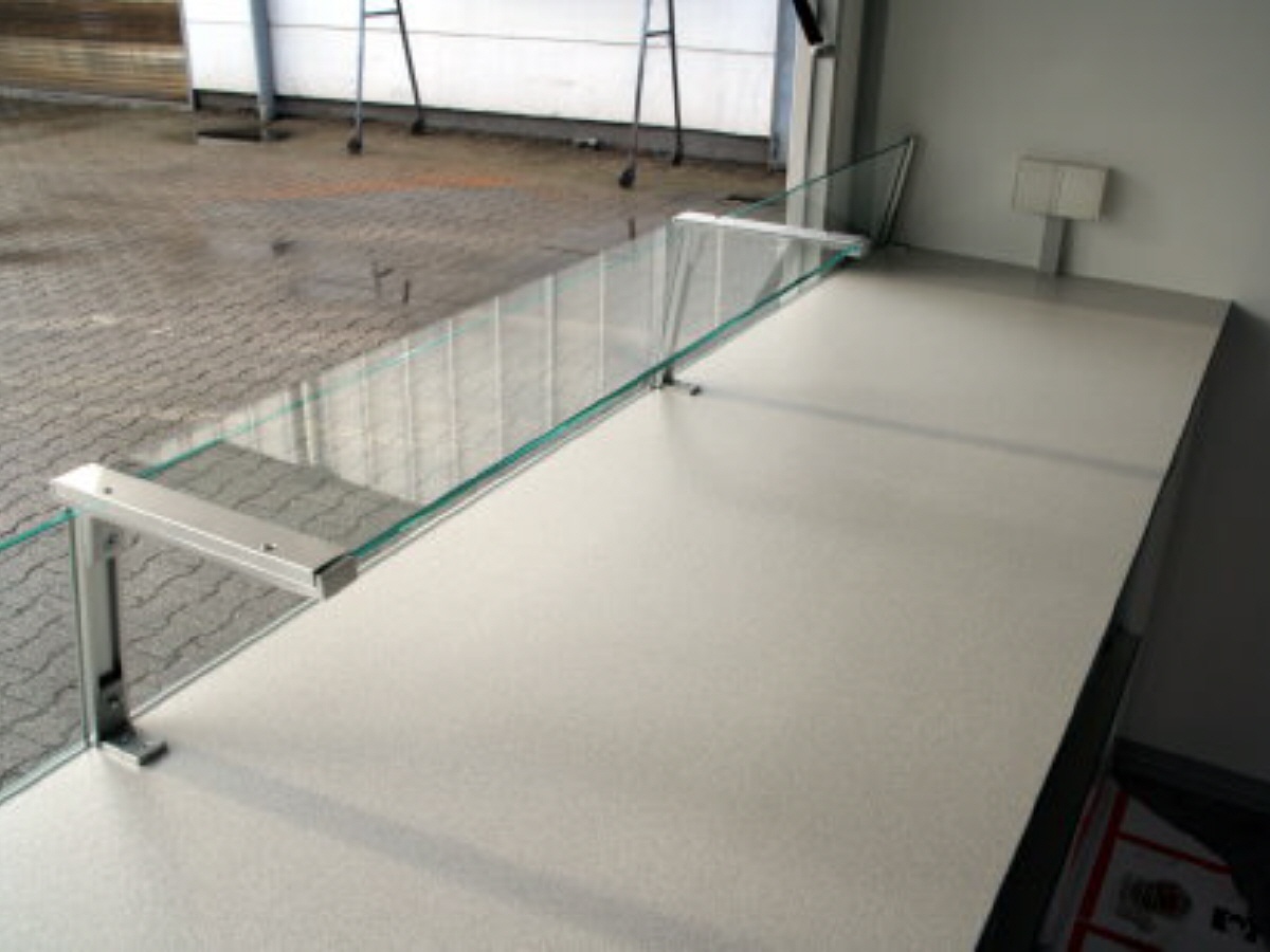 Spuckschutz aus Glas an der Verkaufsklappe 400 mm hoch mit Ablage